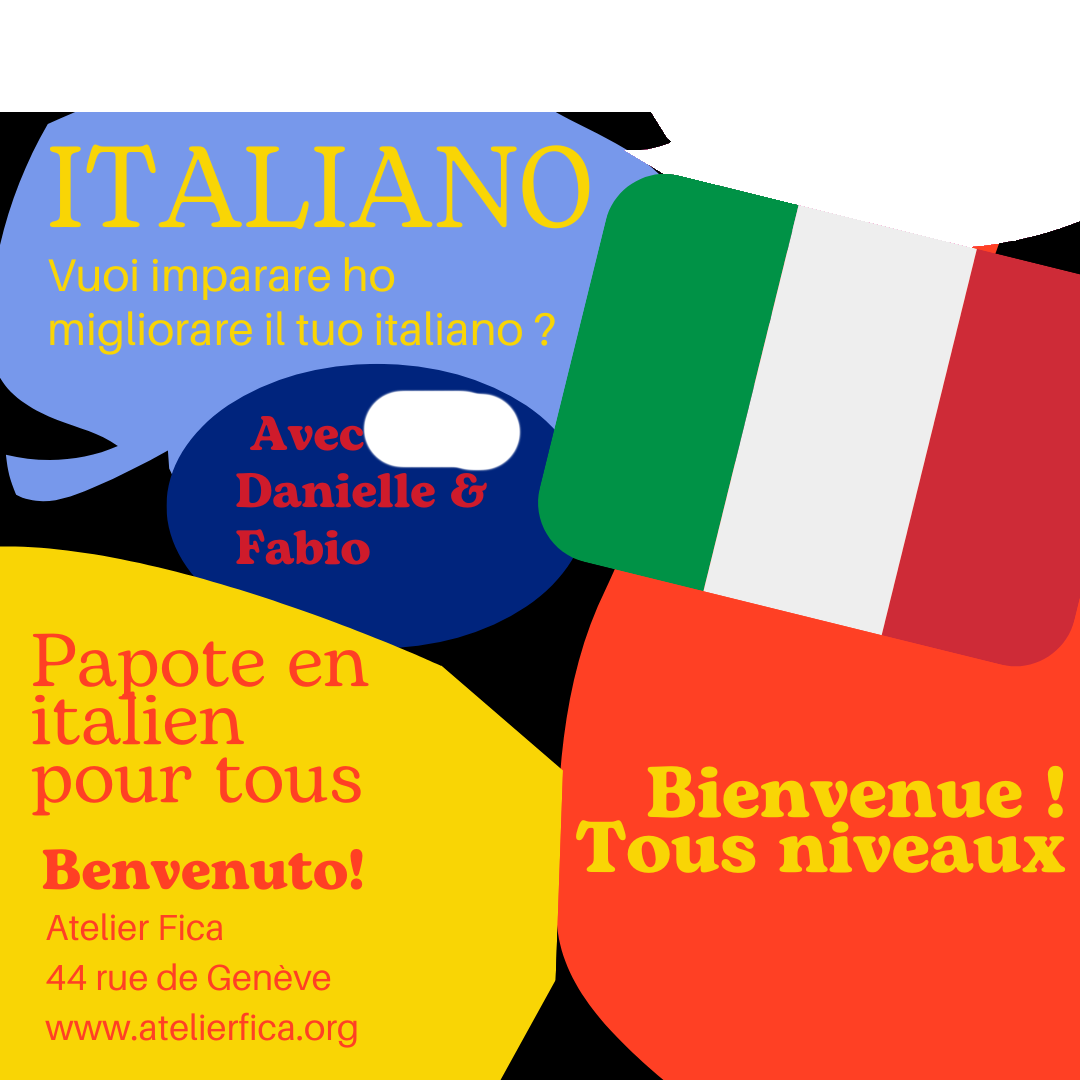 Vous avez déjà des notions d'italien et envie de papoter ? Retrouvez Danielle et Fabio autour d'un goûter pour 1h d'italien ! |